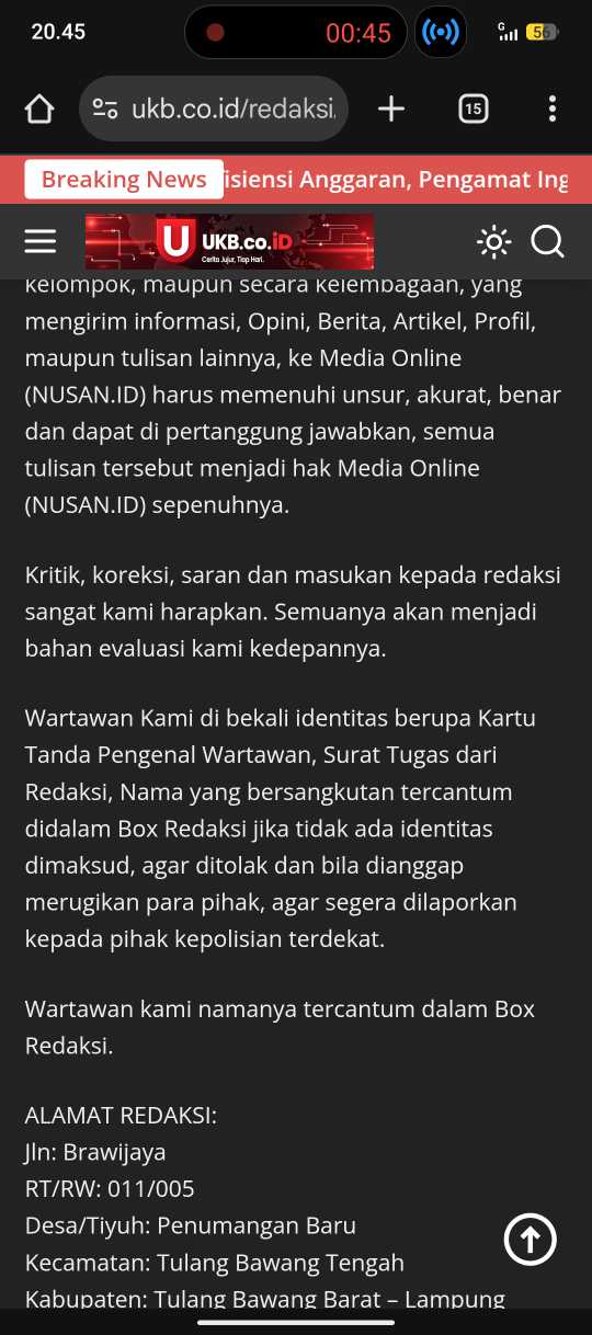 SUDUT INDONESIA.ID – Bandar Lampung, 30 Desember 2025. Media daring UKB.Co.Id diduga telah melakukan penggunaan kotak redaksi (box redaksi) yang tidak jelas penandaan serta penayangan berita tanpa izin dari sumber asli, berdasarkan pantauan dan laporan yang diterima.